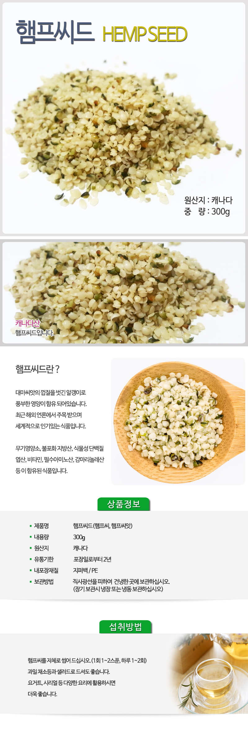 청명약초 햄프씨드(대마씨)(햄프씨앗햄프씨)((300g)-캐나다산