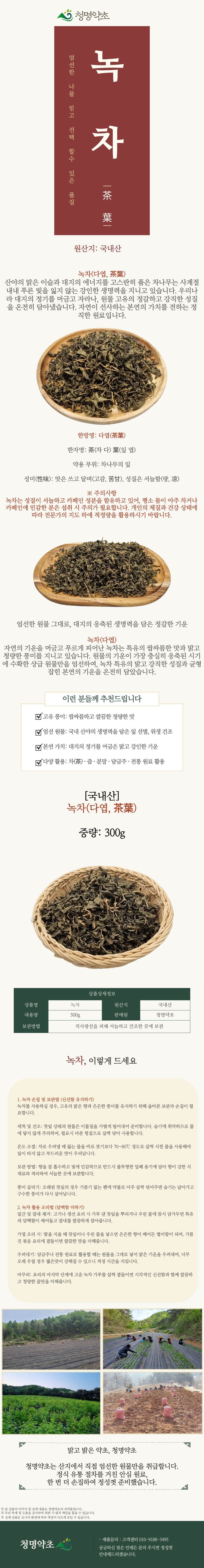 청명약초 녹차(녹차잎)(300g)-국내산