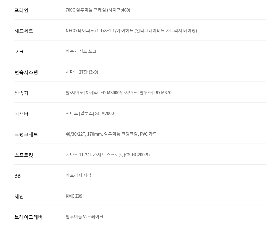 삼천리자전거 블랙캣 하이브리드 프리스코 27단 700C(460)- 2018년 모델