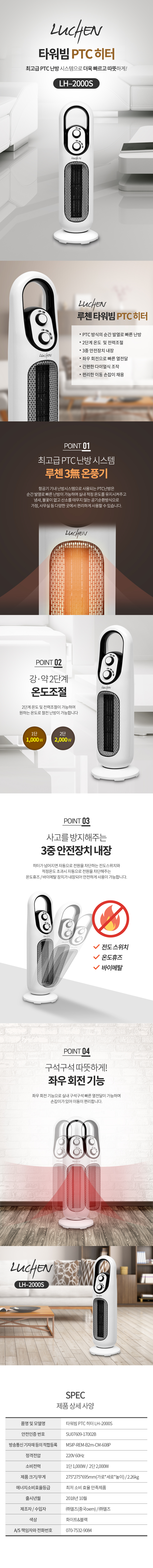 [루첸] 타워빔 PTC히터 LH-2000S